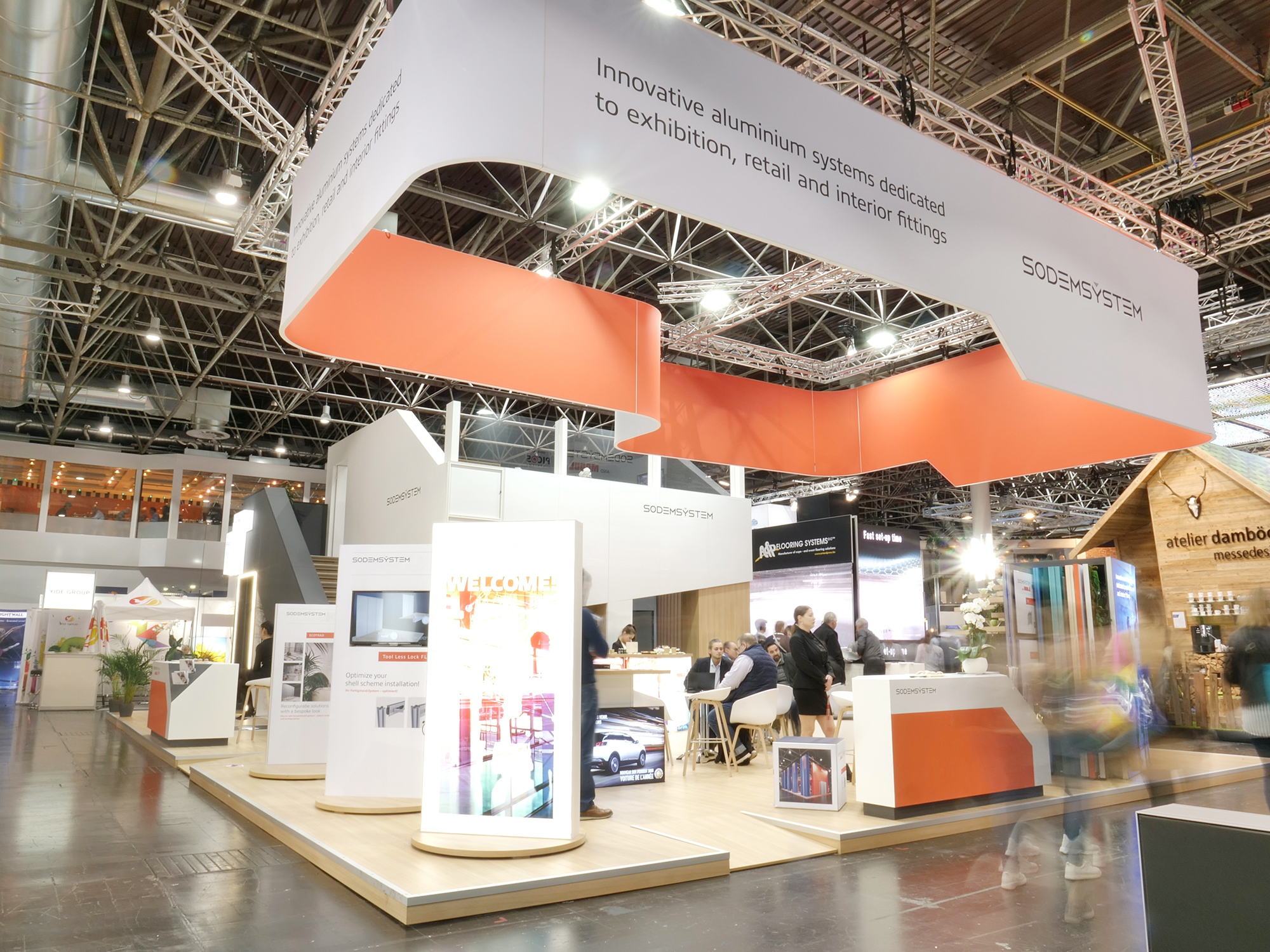 Depuis sa création, Sodem System place l’installation générale et la conception de stands au cœur de son activité. Nous accompagnons organisateurs de salons et exposants avec des solutions standards, sur-mesure, modulables et éco-responsables, quelle que soit la superficie ou la complexité du projet.