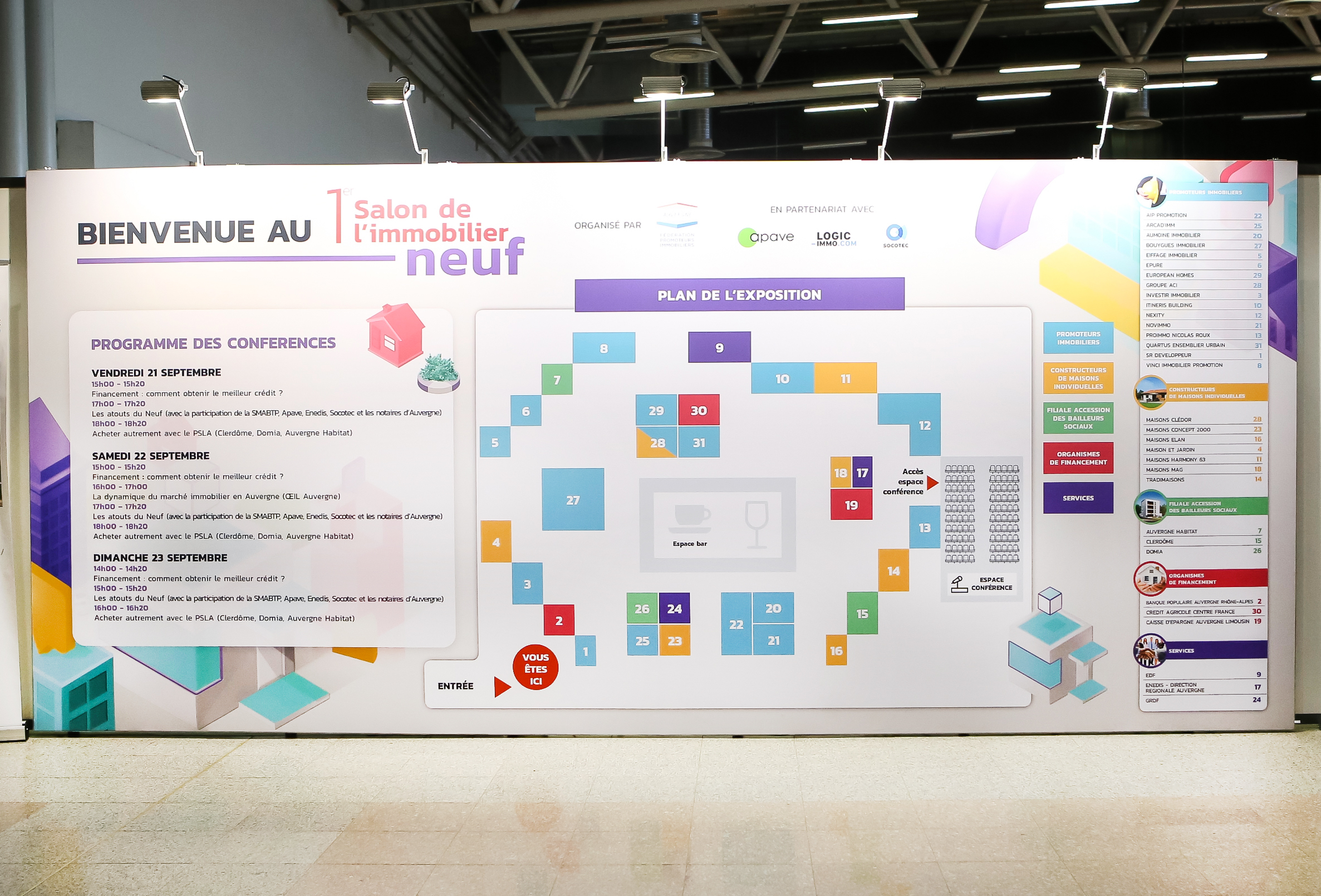 Sur un salon, la visibilité commence en hauteur. Nos enseignes hautes : rondes, rectangulaires, cubiques, suspendues, avec ou sans rétro-éclairage, permettent à votre marque d’être identifiable depuis n’importe quel point du hall d’exposition.