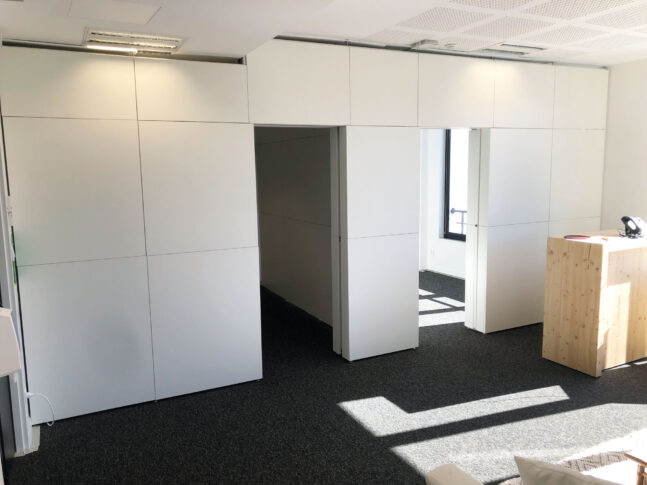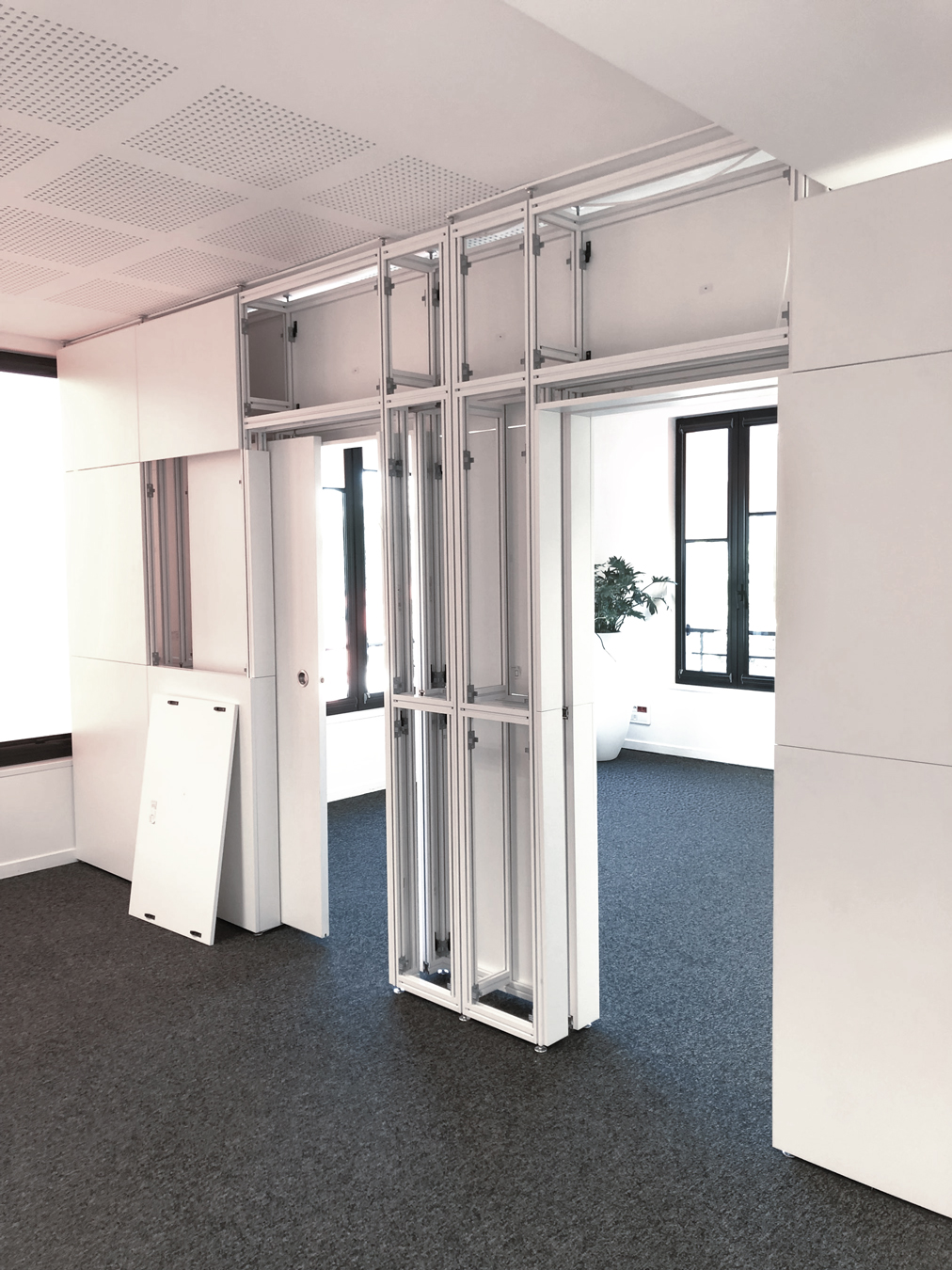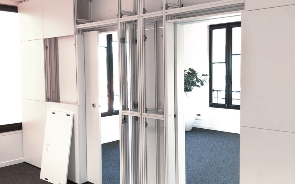 Associée à une structure aluminium robuste et légère, cette diversité de finitions permet d’obtenir des cloisons au rendu professionnel, sans compromis sur la modularité.